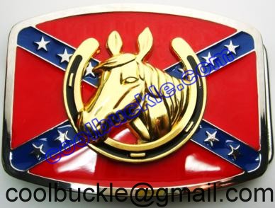 REBEL FLAG ON SQUARE WITH HORSE AND HORSE SHOE GOLD BELT BUCKLE. Come and see the wide selection of belt buckles that we have. Belt buckles made of mixed metals or alloys. We also have belts for our BELT BUCKLEs. Iced out BELT BUCKLE or buckles filled with stones also called bling BELT BUCKLEs. We also carry Western Belt Buckles and confederate or rebel belt buckles.