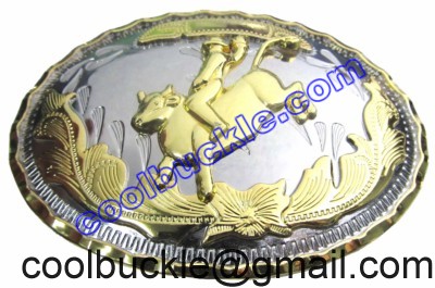 WESTERN BELTBUCKLE Rodeo two tone oval belt buckle.
