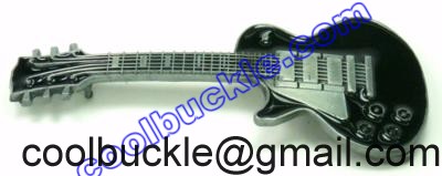 Electric guitar black cut out belt buckle. This buckle is 4 3/4 wide by 2 inches tall.