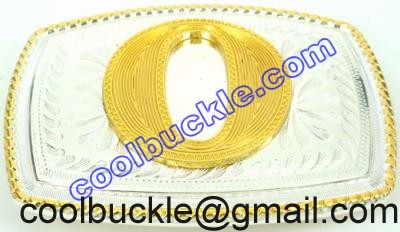 INITIAL (O) SMALL TWO TONE BELT BUCKLE. This buckle is 3 wide by 2 1/4 inches tall.