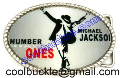 MICHAEL JACKSON NUMBER ONES ON OVAL BELT BUCKLE. This buckle is 3 1/2 wide by 2 3/8 inches tall.