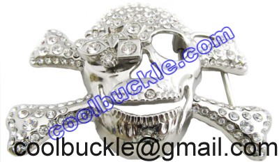 Skull with eye patch crossed bones with stones BELT BUCKLE.